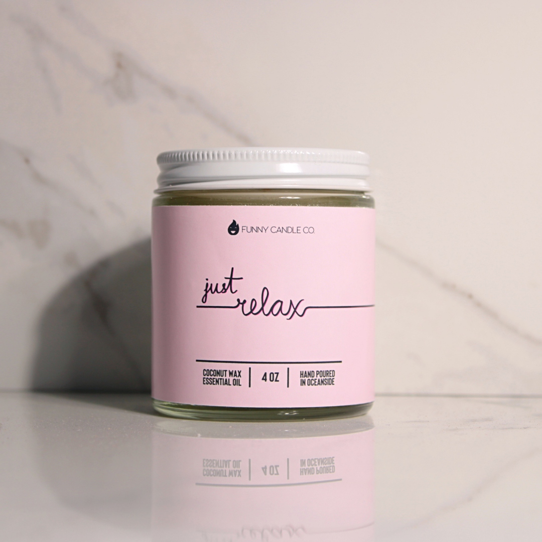 With its simple yet effective name and enticing fragrance, this candle is the perfect way to take a break from the hustle and bustle of daily life in a humorous way. Whether you're lighting it up after a long day at work or just need a moment of peace and quiet, the "Just Relax" candle is sure to help you recharge your batteries and feel refreshed.